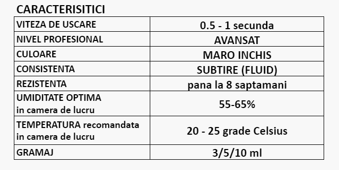 Crimson Brown are o viteza de uscare rapida, o fluiditate excelenta si o rezistenta de pana la 8 saptamani.